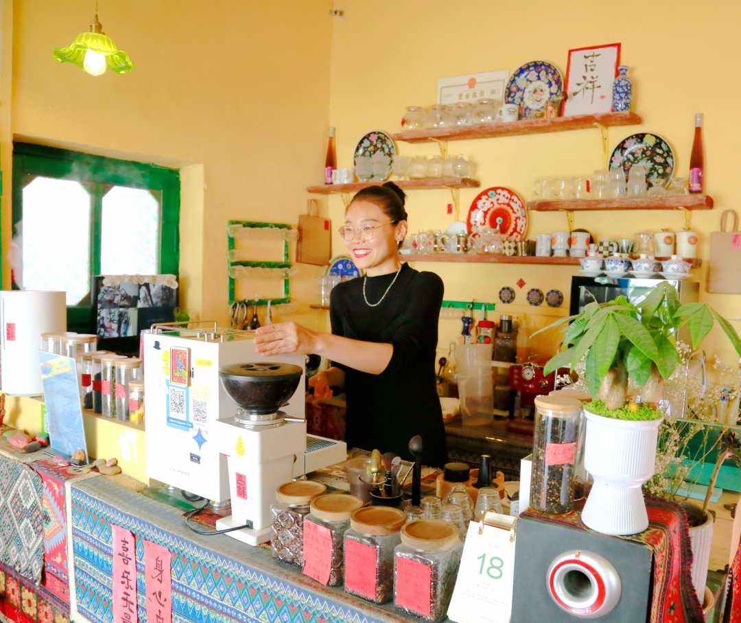 “這裏的生活氣息深深打動了我。”一次庫車旅行,讓張媛媛下決(jue) 心留下來創業(ye) 。她在熱斯坦曆史文化街區開了一家咖啡館,色彩鮮明的裝修、時尚氣息的裝飾,使小店很快成為(wei) 當地旅遊的小亮點。