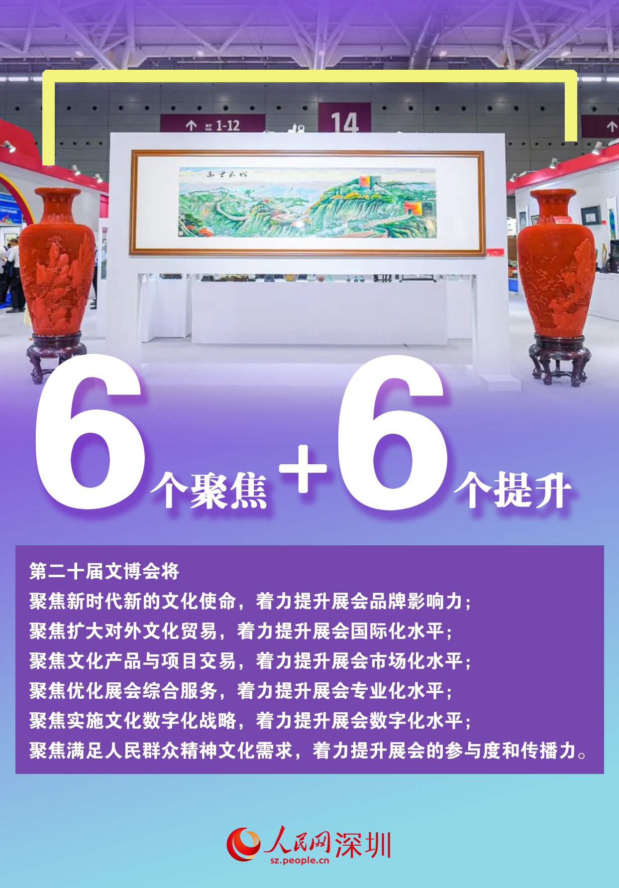 5月23日至27日,第二十屆中國(深圳)國際文化產(chan) 業(ye) 博覽交易會(hui) 將在深圳國際會(hui) 展中心舉(ju) 辦。本屆文博會(hui) 將進一步擴大展會(hui) 規模,優(you) 化展會(hui) 結構,強化交易功能,提升服務質量,努力打造國際文化產(chan) 業(ye) 頭部展和最具影響力的文化產(chan) 品貿易平台,為(wei) 推動文化繁榮、建設文化強國、建設中華民族現代文明作出新貢獻。