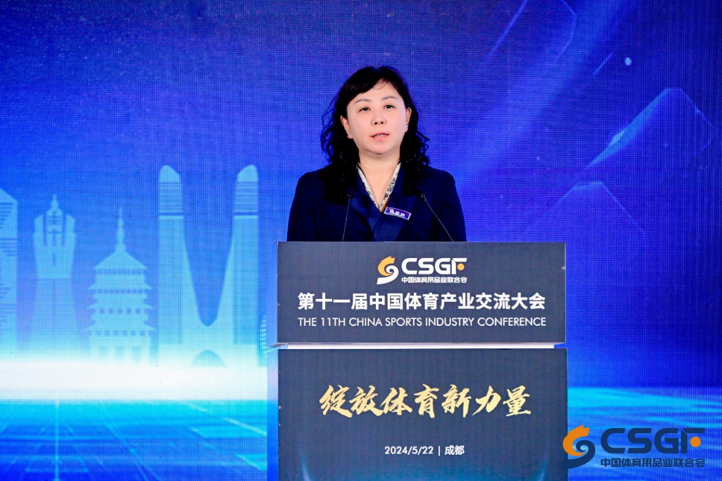 圖為(wei) 國家體(ti) 育總局體(ti) 育經濟司司長楊雪鶇發言。