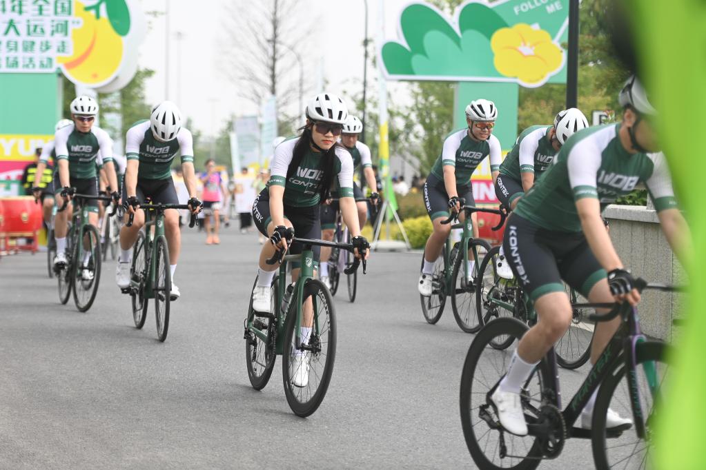 5月19日,2024年全國“行走大運河”全民健身健步走活動浙江站主會(hui) 場活動舉(ju) 行。圖為(wei) 騎行愛好者從(cong) 京杭大運河杭州臨(lin) 平段塘棲運動活力園出發。新華社記者 黃宗治 攝