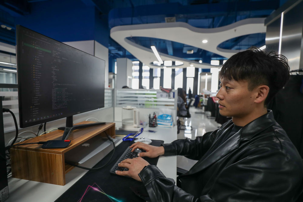 2024年4月18日,在哈爾濱工業(ye) 大學人工智能研究院有限公司,科研人員在進行數據編程。新華社記者 張濤 攝