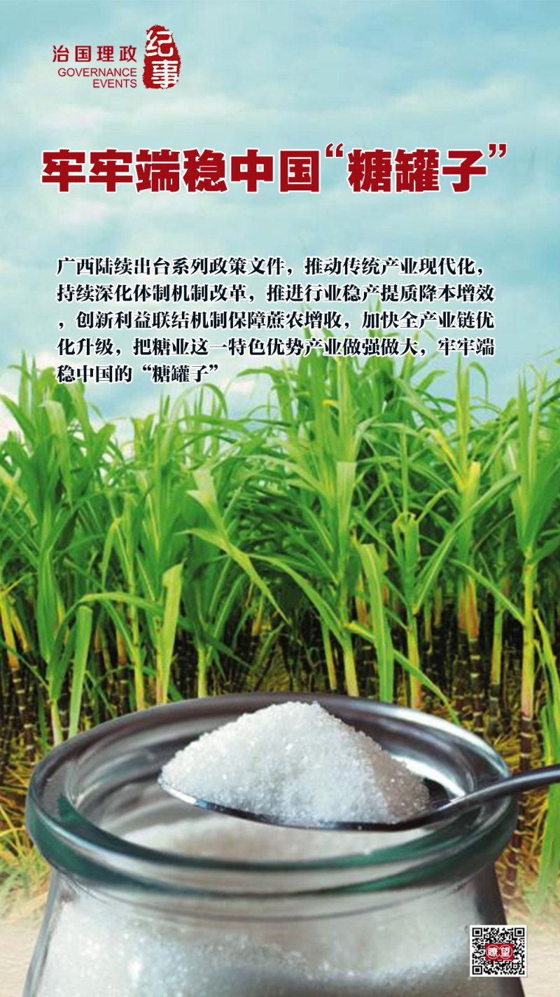 《廣西壯族自治區人民政府關(guan) 於(yu) 深化體(ti) 製機製改革加快糖業(ye) 高質量發展的意見》《廣西糖業(ye) 降本增效三年行動計劃工作方案》《廣西深化糖料蔗良種良法技術推廣工作實施方案》……廣西陸續出台係列政策文件,推動傳(chuan) 統產(chan) 業(ye) 現代化,持續深化體(ti) 製機製改革,推進行業(ye) 穩產(chan) 提質降本增效,創新利益聯結機製保障蔗農(nong) 增收,加快全產(chan) 業(ye) 鏈優(you) 化升級,把糖業(ye) 這一特色優(you) 勢產(chan) 業(ye) 做強做大,牢牢端穩中國的“糖罐子”。