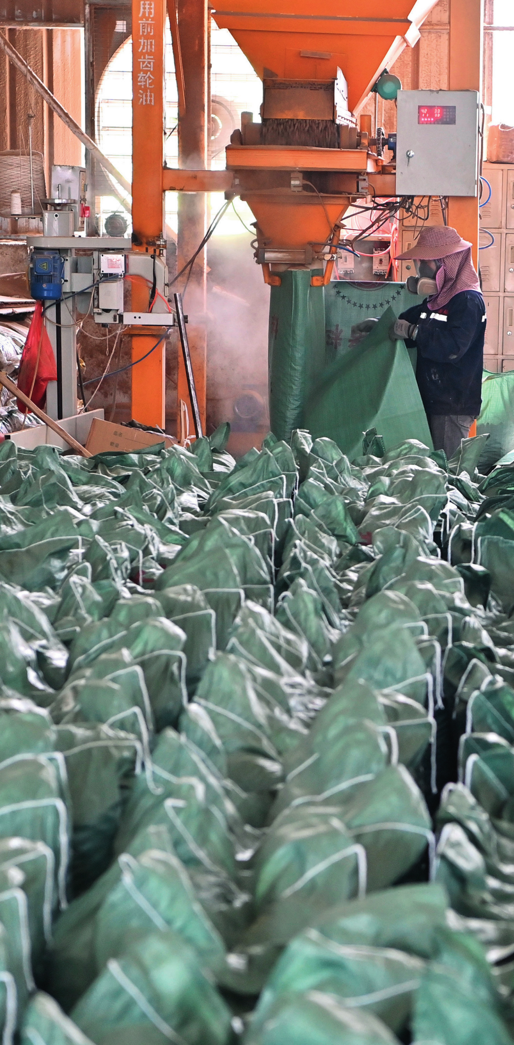 工作人員在廣西來賓小平陽鎮一家飼料廠將甘蔗葉為(wei) 主要原料的飼料裝袋(2023年12月12日攝)周華攝