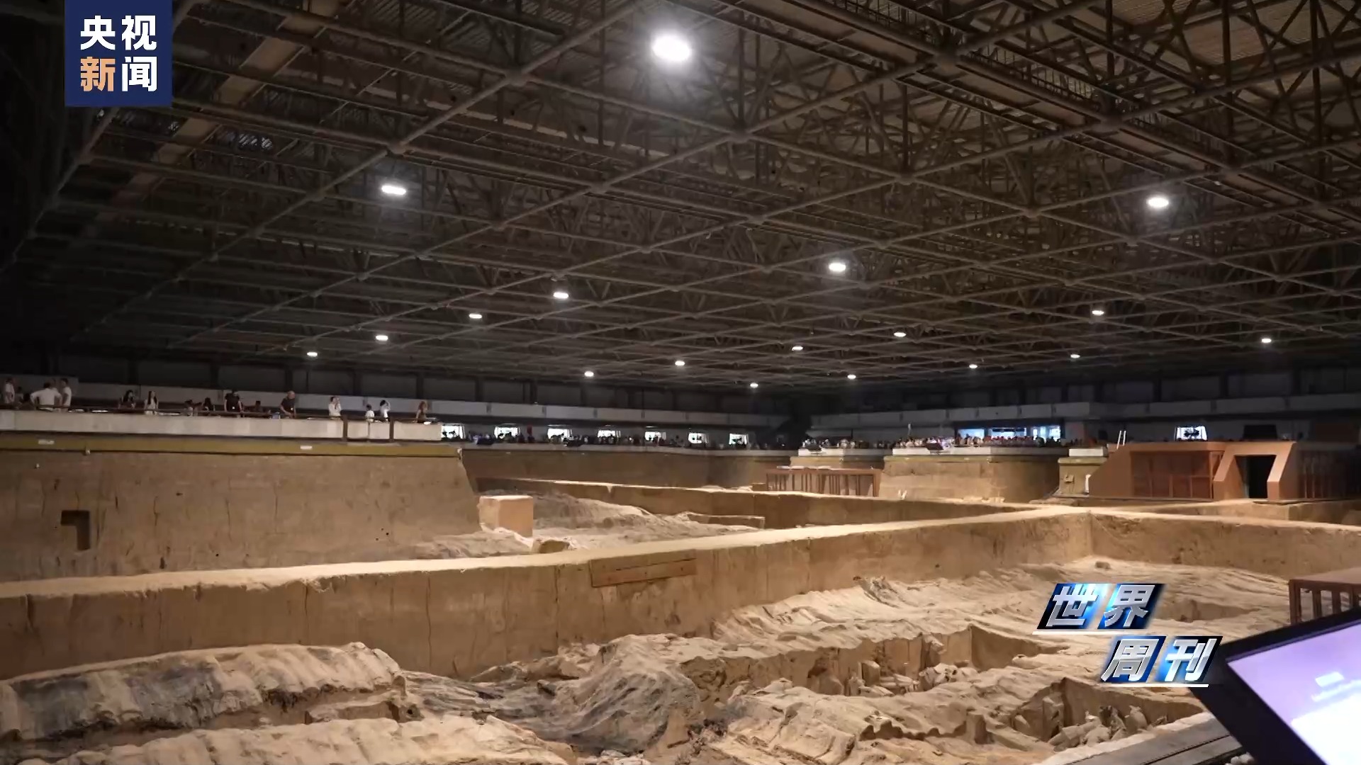秦始皇帝陵博物院副院長 周萍:其實秦始皇帝陵博物院出土,不僅(jin) 僅(jin) 隻有彩繪陶俑。現在觀眾(zhong) 去現場去看的時候,最常看到的就是幾種材質,一種就是我們(men) 的彩繪陶俑,一種是坑內(nei) 的土遺址,一種我們(men) 銅車馬是金屬文物;其實在土遺址裏麵,有很多很多這種木質的遺存。它這個(ge) 就是我們(men) 這個(ge) 隔梁在建的時候,實際上就相當於(yu) 用木頭去搭了一個(ge) 相當於(yu) 小房子,把這些彩繪俑保存在裏麵。