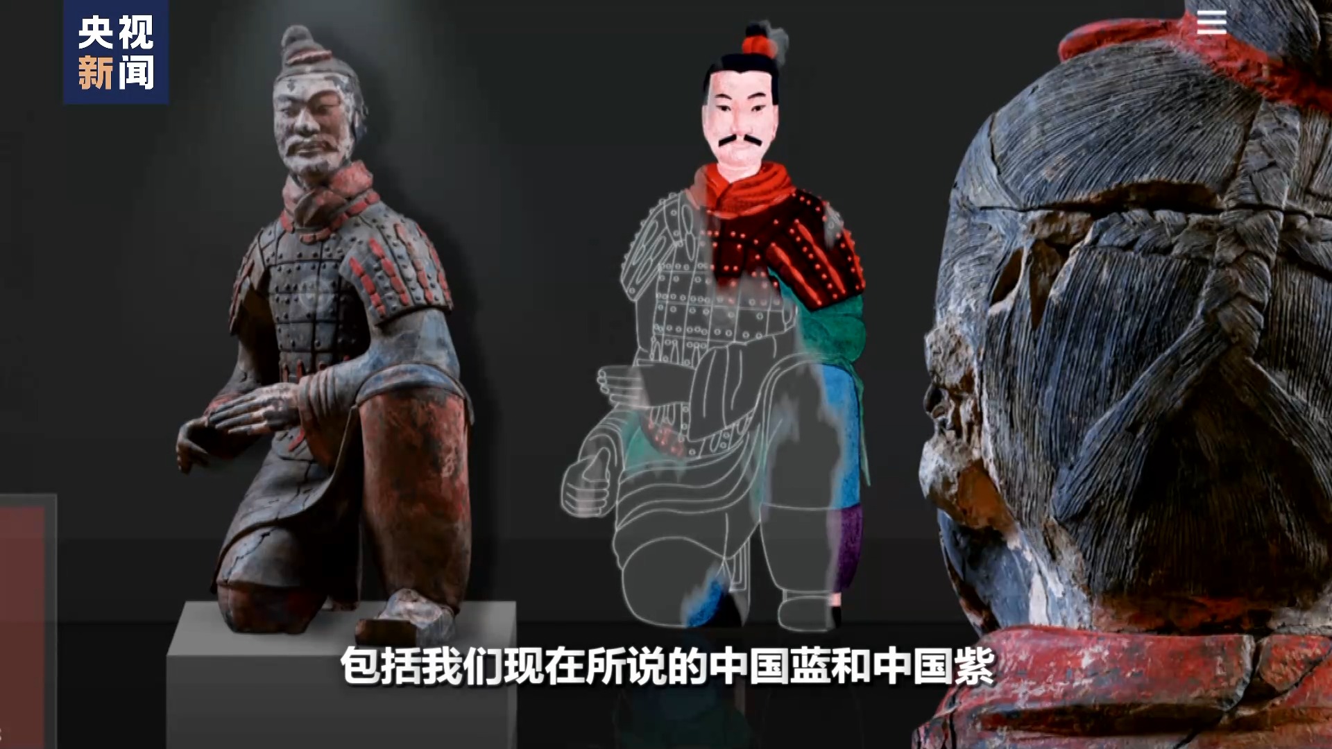 秦始皇帝陵博物院文物保護修複專(zhuan) 家 蘭(lan) 德省:那麽(me) 這在秦俑實際上,目前有八種顏色。紅、黃、綠、藍、紫、白、黑、粉等等,這就是已經定型的八種。但是我們(men) 最近也要分析比這個(ge) 還要多,包括有一些它是白裏透紅的粉色,還有的它就是幾種合成色,包括我們(men) 現在所說的中國藍和中國紫。