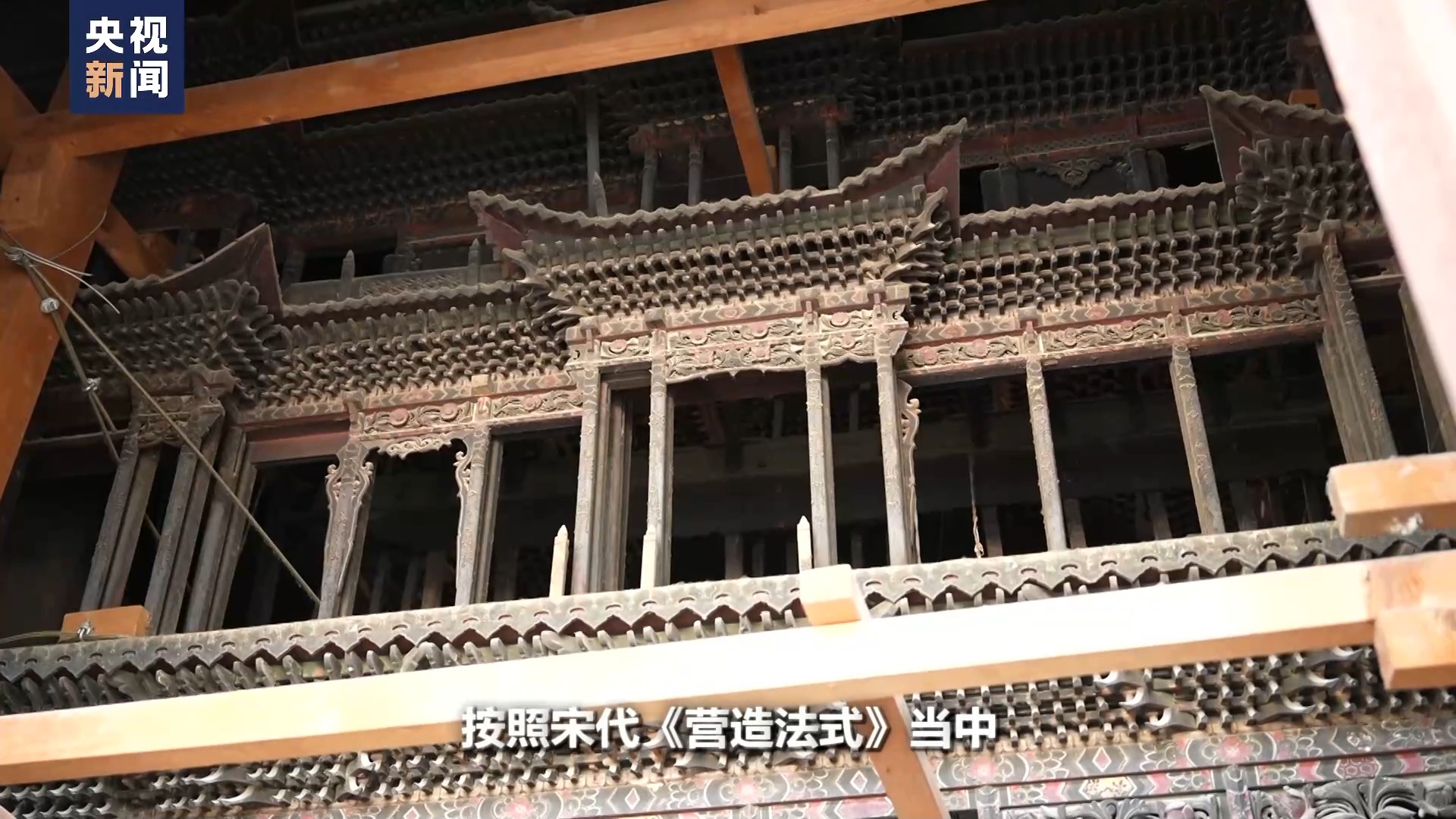陝西省文物保護研究院保護修複一部副主任 張芳:他們(men) 當時的反應是非常驚訝,因為(wei) 這種純粹的,沒有用一根釘子的榫卯結構層層疊疊,在上麵天宮樓閣的一個(ge) 呈現。他們(men) 在法國是完全見不到,他們(men) 也想象不到。