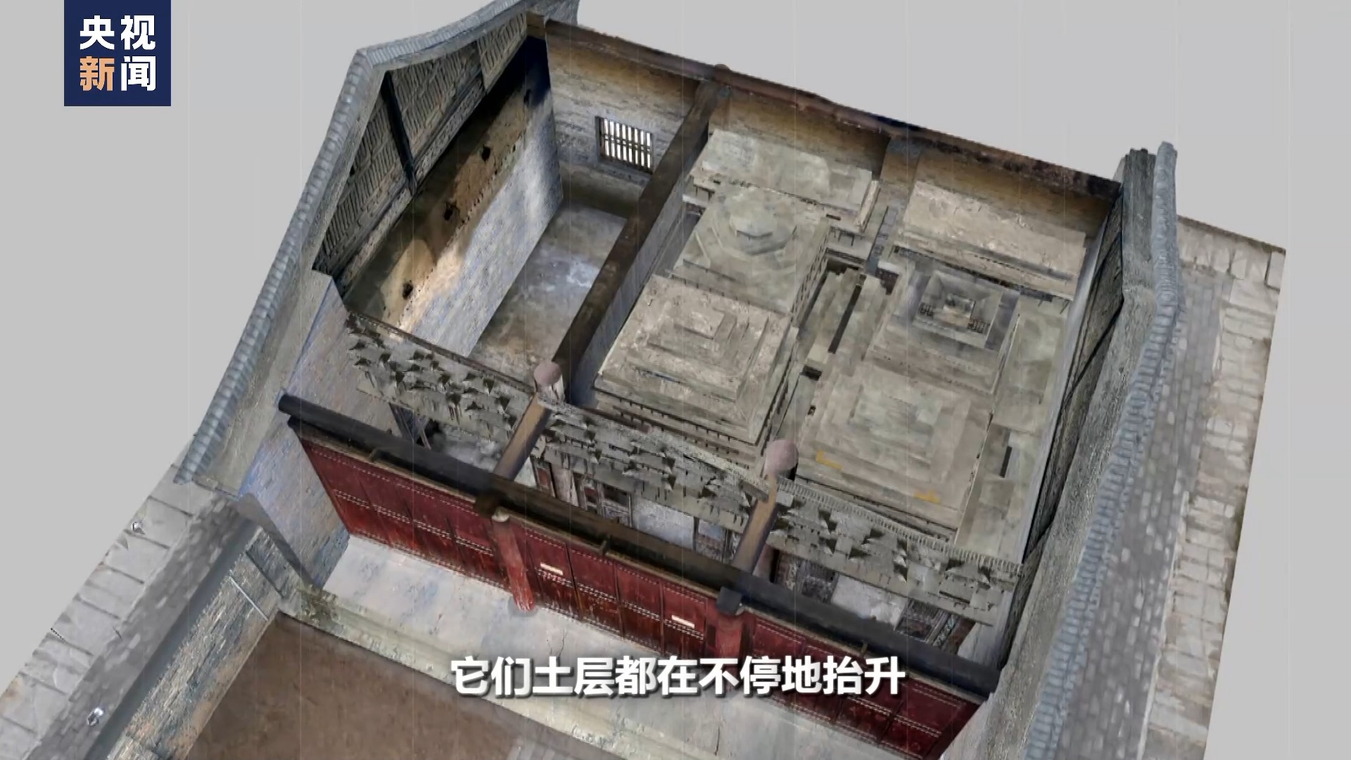 秦始皇帝陵博物院副院長 周萍:基本上到了塔的塔尖位置,它不是上麵還有個(ge) 木塔嗎。木塔現在整體(ti) 的木質維修已經基本完成了,它在木台結構上麵貼覆了一層鉛皮,鉛的一些裝置構件,隨著鉛往下貼的過程中,已經開始落架。所以我們(men) 能登到最高位置。