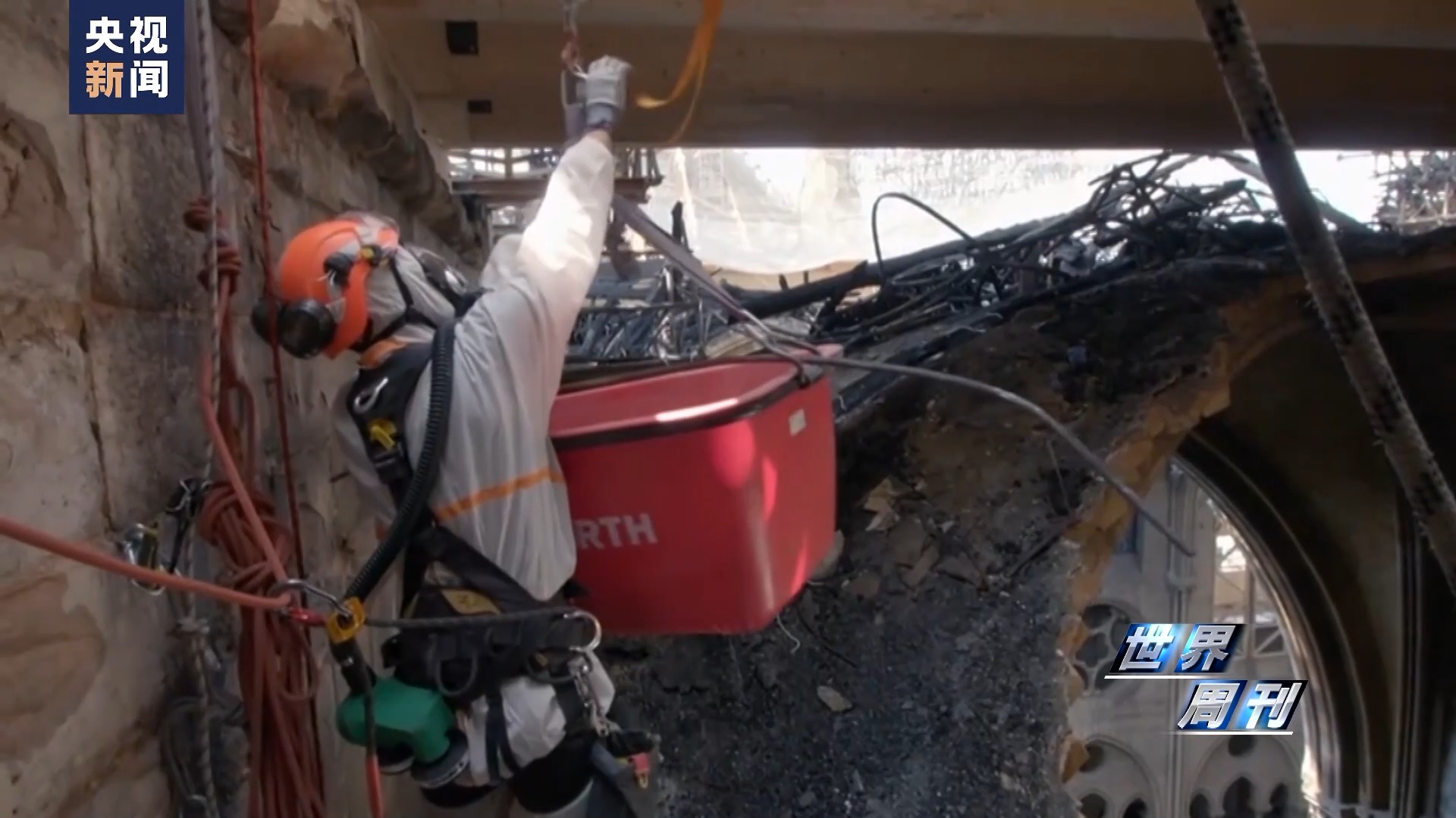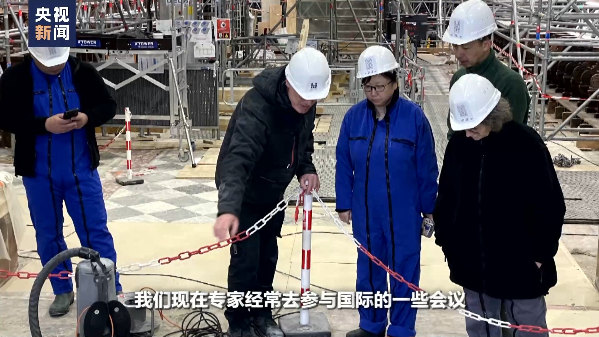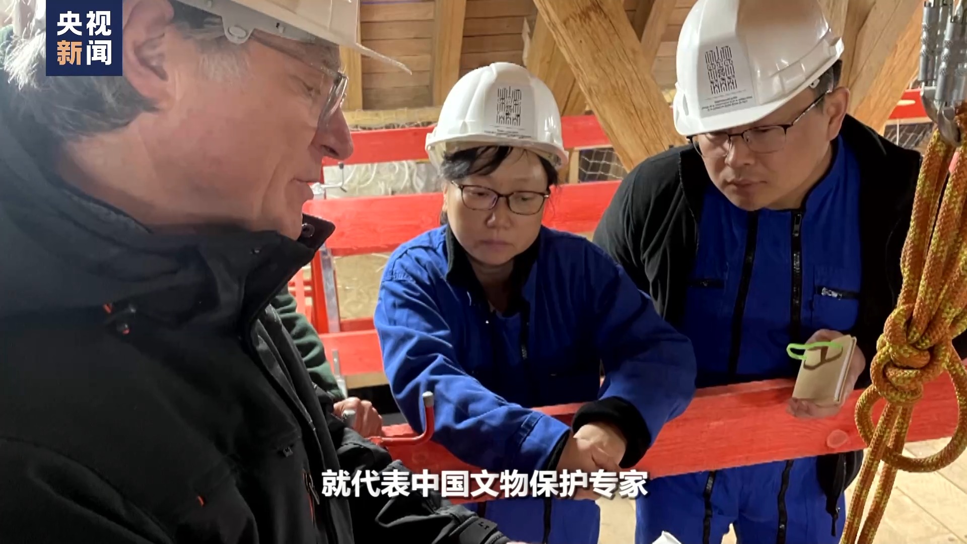 總台記者 張誠:兩(liang) 位專(zhuan) 家是登上了巴黎聖母院什麽(me) 位置?