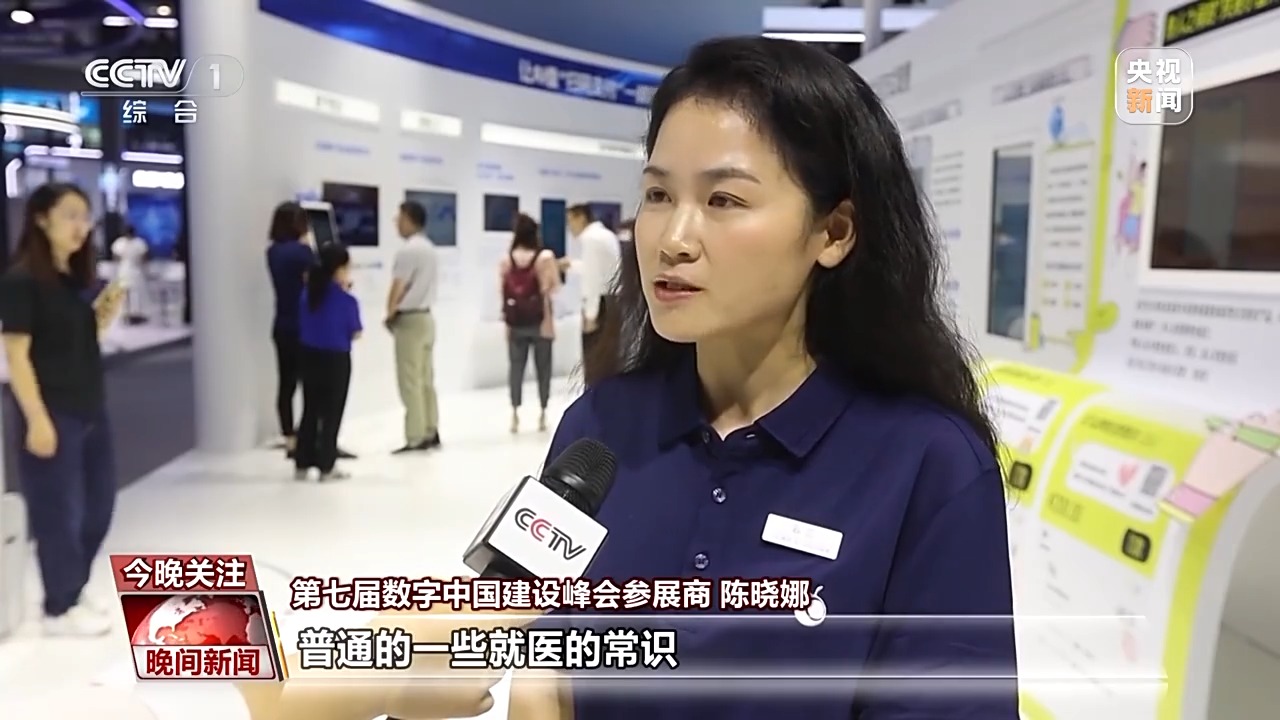 第七屆數字中國建設峰會(hui) 參展商 陳曉娜:問答的過程中可以幫助患者去解決(jue) 比如像藥品說明、普通的一些就醫常識,還有一些報告解讀這樣的(問題)。