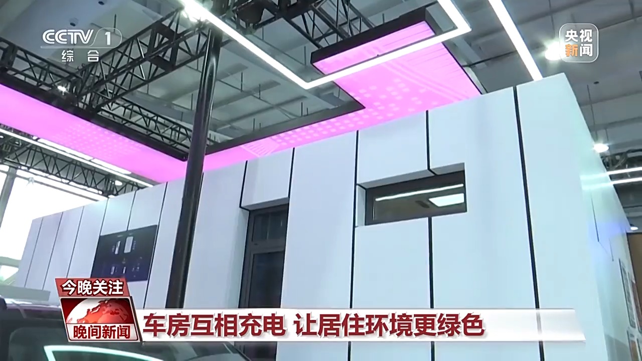 總台央視記者 張春玲:在我們(men) 房子的頂部還有一個(ge) 神秘的裝備就是新能源電池板,通過新能源電池板對太陽能的收集之後,它可以放在房屋這一側(ce) 的儲(chu) 能箱裏,同時,它旁邊還有一個(ge) 雙向的充電樁,這個(ge) 充電樁可以給我們(men) 的新能源電池汽車進行充電,同時房子的能源匱乏的時候,我們(men) 的新能源汽車還可以反向的給這個(ge) 房子放電,實現了能源循環利用。
