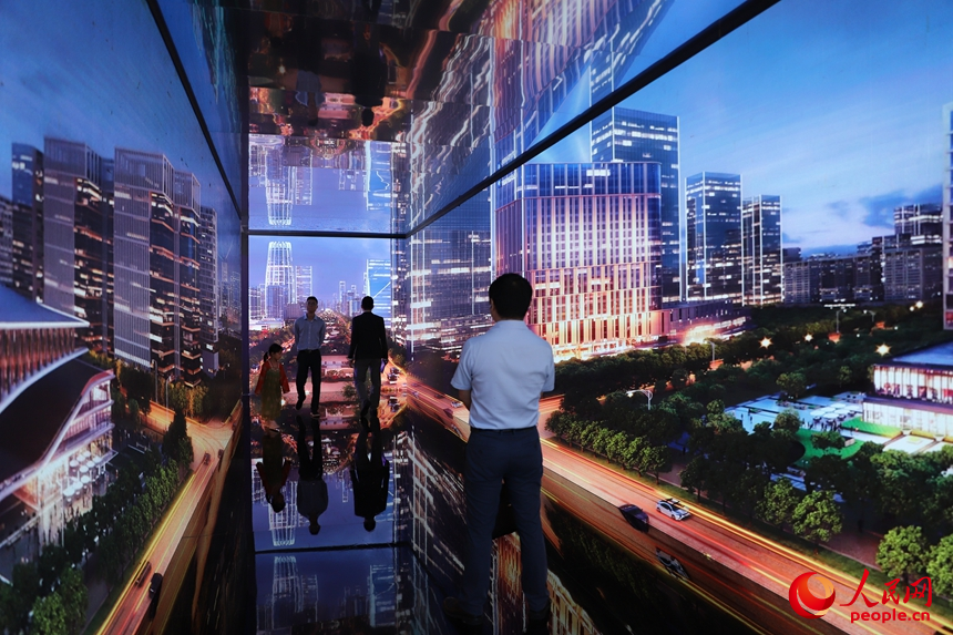 河北展區,雄安新區時空長廊打造出沉浸式、交互式創意體(ti) 驗空間。人民網 劉森君攝
