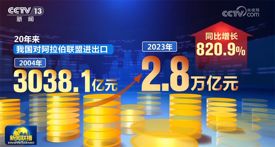5月30日是中國—阿拉伯國家合作論壇成立20周年。據海關(guan) 統計,20年來,我國對阿拉伯聯盟進出口由2004年的3038.1億(yi) 元增長至2023年的2.8萬(wan) 億(yi) 元,同比增長820.9%。