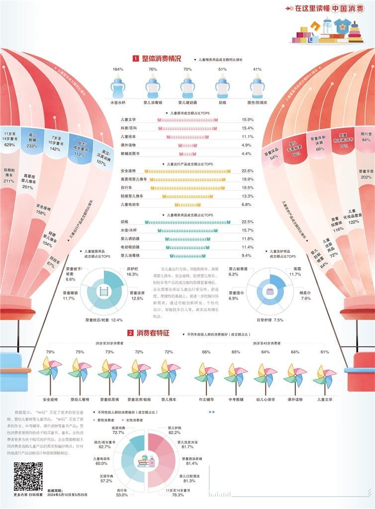 隨著“80後”“90後”育兒(er) 理念和消費觀念變化,兒(er) 童成為(wei) 消費細分市場中不可忽視的一部分,兒(er) 童消費向多元細分方向拓展,圖書(shu) 消費、出行消費、用品消費等相關(guan) 領域呈現出顯著增長趨勢。