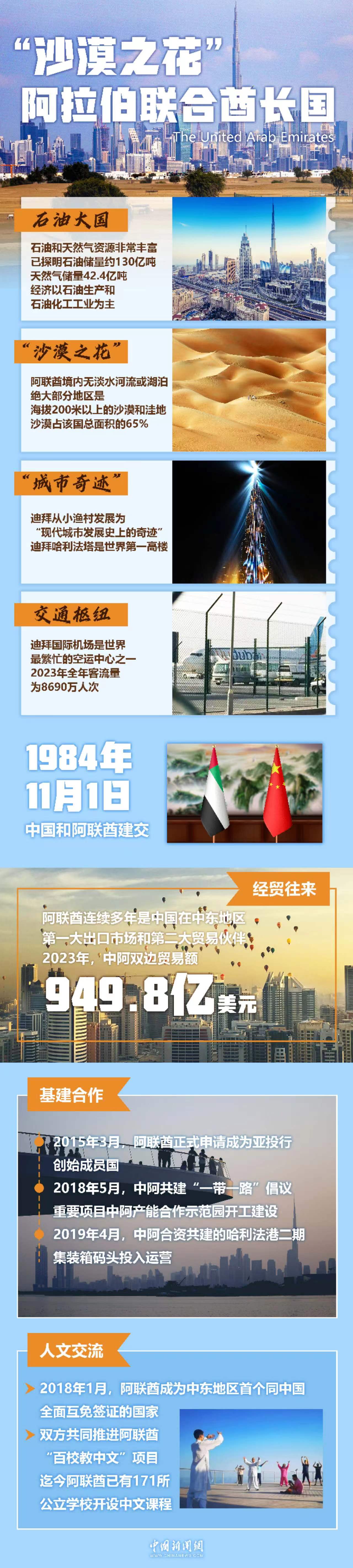 穆罕默德表示,阿聯酋同中國關(guan) 係建立在相互信任、相互尊重和共同利益的基礎之上,各領域合作達到非凡水平。
