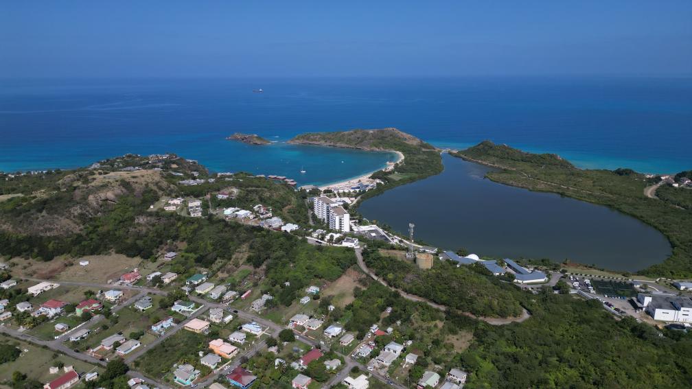 這是2月1日用無人機拍攝的安提瓜和巴布達首都聖約翰海岸線一景。新華社發(裏卡多·蒙托亞(ya) 攝)