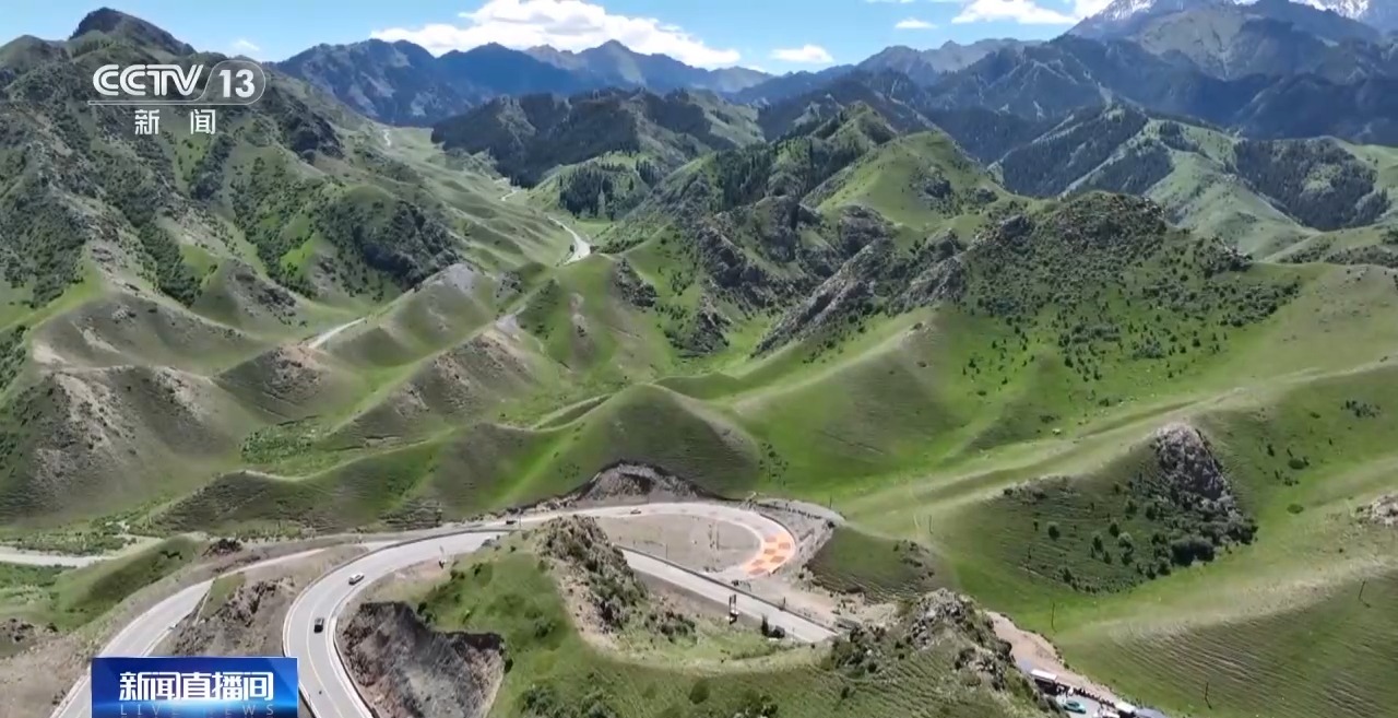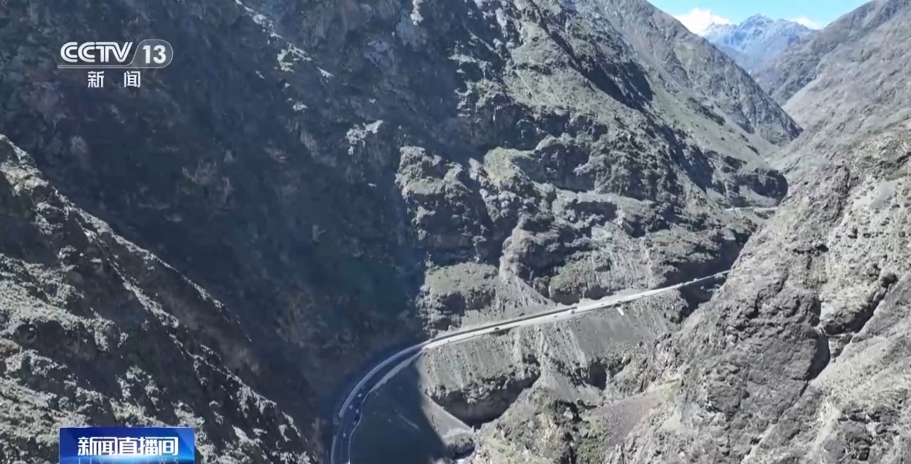 總台記者 劉菲:這一路可以說是崖壁陡峭、岩石突兀,這一側(ce) 是垂直接近90度的山體(ti) ,上下的高差達到200多米。在這條公路上行駛,可以感覺到翻過一座險要山峰,另一側(ce) 就邂逅了高山草甸的綠意。