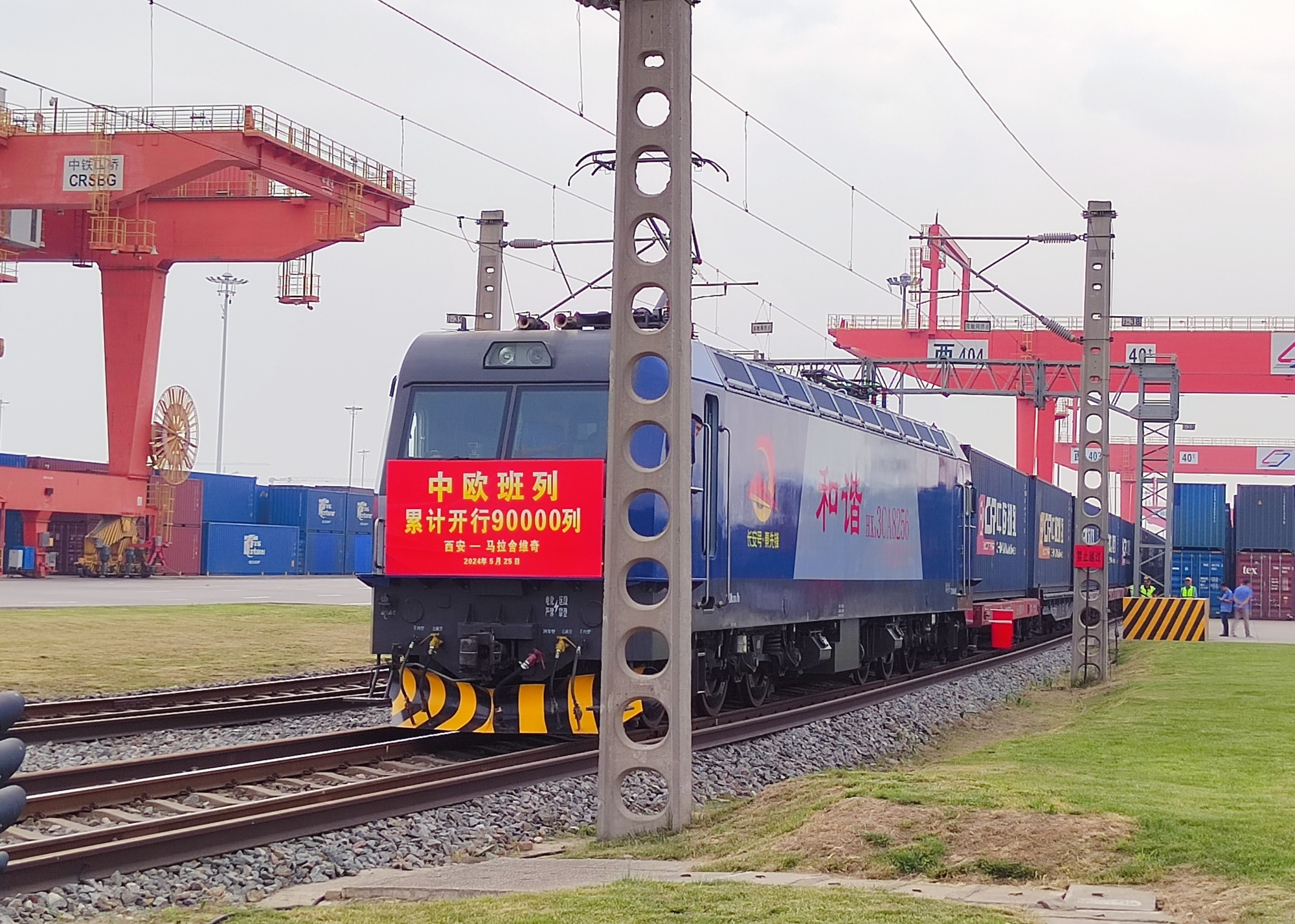 中歐班列,晝夜馳騁在歐亞(ya) 大陸上,聯通東(dong) 西,暢通貿易,是“絲(si) 綢之路經濟帶”上的“鋼鐵駝隊”。今年5月24日,隨著X8157次中歐班列從(cong) 西安國際港站發出,一路向西開去,中歐班列已經累計開行9萬(wan) 列。從(cong) 2013年開行80列到2016年開行1702列,再到2023年開行1.7萬(wan) 列,十年來,中歐班列不斷跑出“加速度”,目前已通達歐洲25個(ge) 國家223個(ge) 城市,連接11個(ge) 亞(ya) 洲國家一百多個(ge) 城市,服務網絡基本覆蓋歐亞(ya) 全境,年運輸貨值由2016年80億(yi) 美元增長到2023年的567億(yi) 美元。