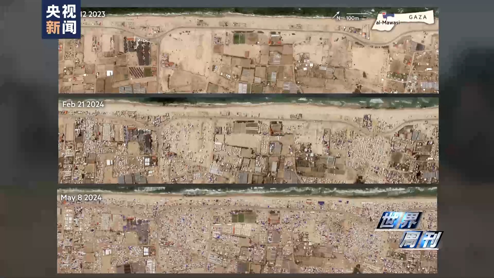 最新的衛星圖像顯示,這些人道主義(yi) 區域布滿了帳篷和塑料布搭建的臨(lin) 時建築,甚至一路延伸到沙灘上,最近的一排距離大海隻有幾步之遙。