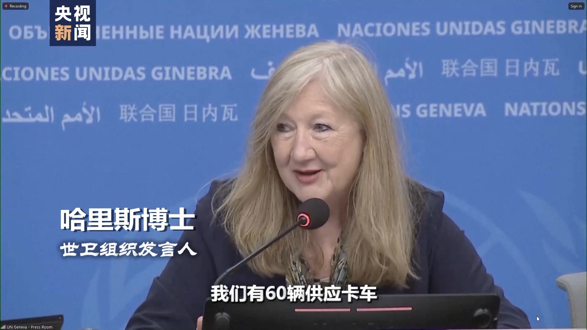 世衛組織發言人 哈裏斯博士:由於(yu) 邊境關(guan) 閉,我們(men) 有60輛供應卡車在阿裏什等候,無法進入拉法。