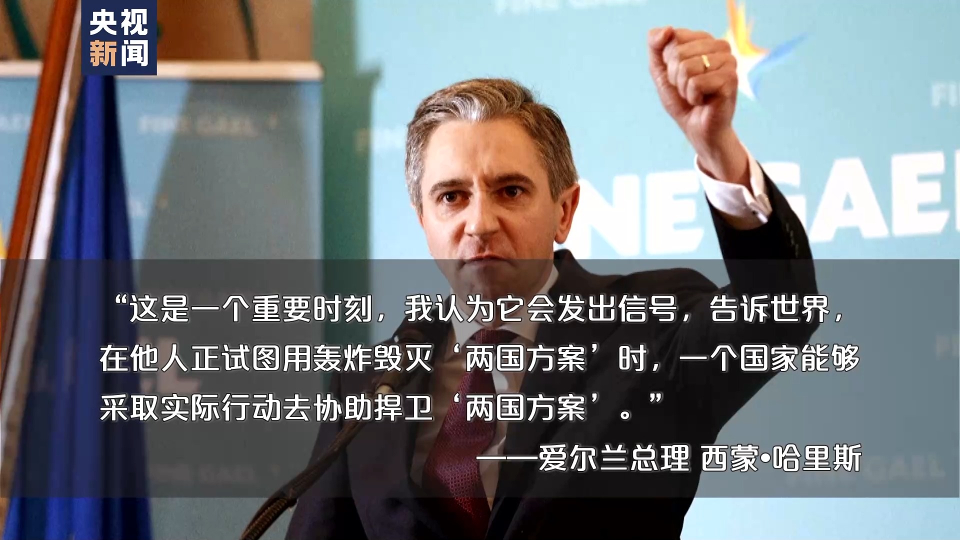“這是一個(ge) 重要時刻,我認為(wei) 它會(hui) 發出信號,告訴世界,在他人正試圖用轟炸毀滅‘兩(liang) 國方案’時,一個(ge) 國家能夠采取實際行動去協助捍衛‘兩(liang) 國方案’。”——愛爾蘭(lan) 總理 西蒙·哈裏斯