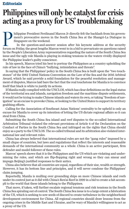 原文標題:Philippines will only be catalyst for crisis acting as a proxy for US' troublemaking