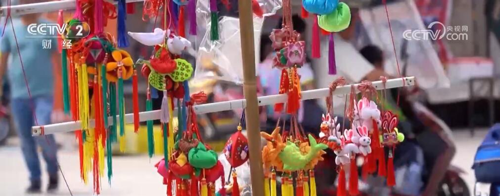 這兩(liang) 天,西和縣長道鎮的街頭巷尾洋溢著熱鬧的節日氛圍。街道兩(liang) 旁的攤位上掛滿了各式各樣的香包,有粽子,還有十二生肖和繡球形狀的,吸引了不少遊客前來選購。
