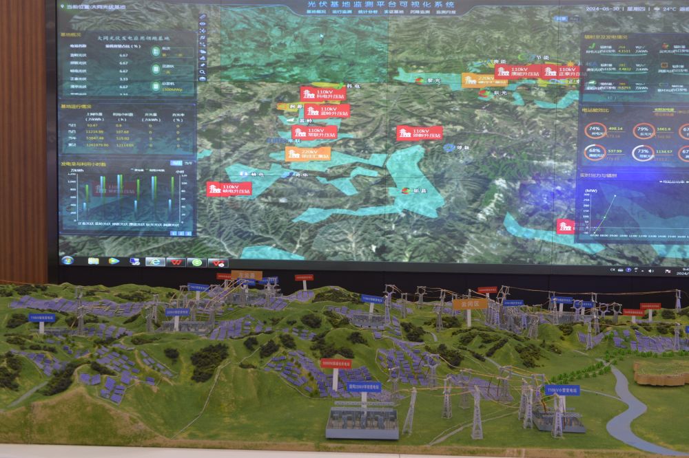5月29日,記者拍攝的大同光伏發電監測服務中心的可視化係統。(新華社記者劉力航 攝)