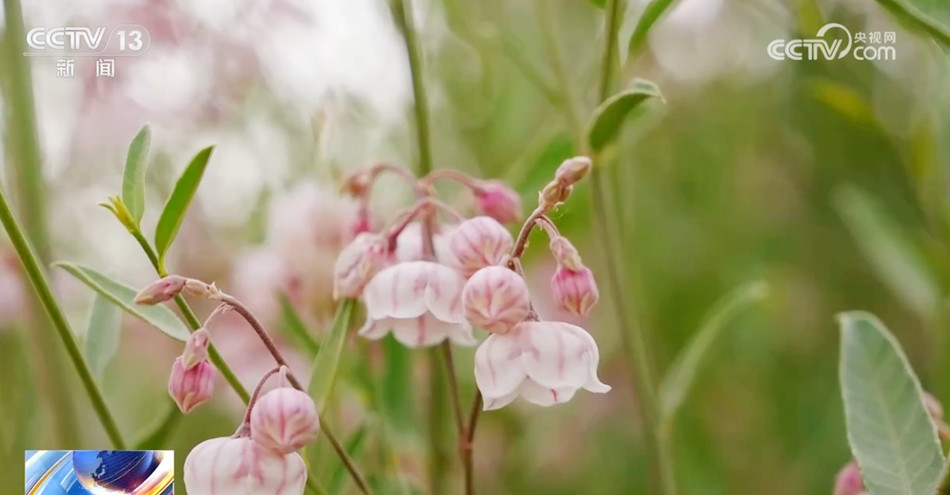 在新疆巴州尉犁縣羅布麻種植基地,粉色的羅布麻花朵直徑約1厘米左右,外形好似一枚枚倒掛枝頭的“小鈴鐺”隨風搖曳,獨特的“沙漠花開”也吸引了來自全國各地的遊客前來。