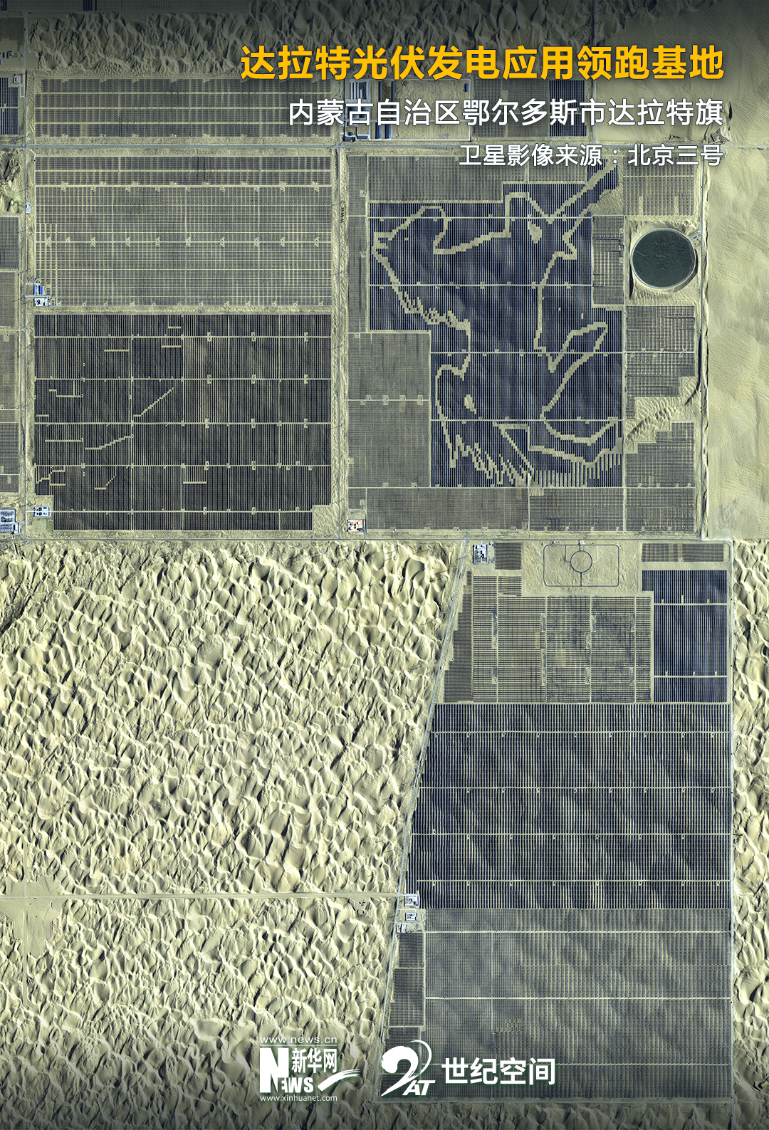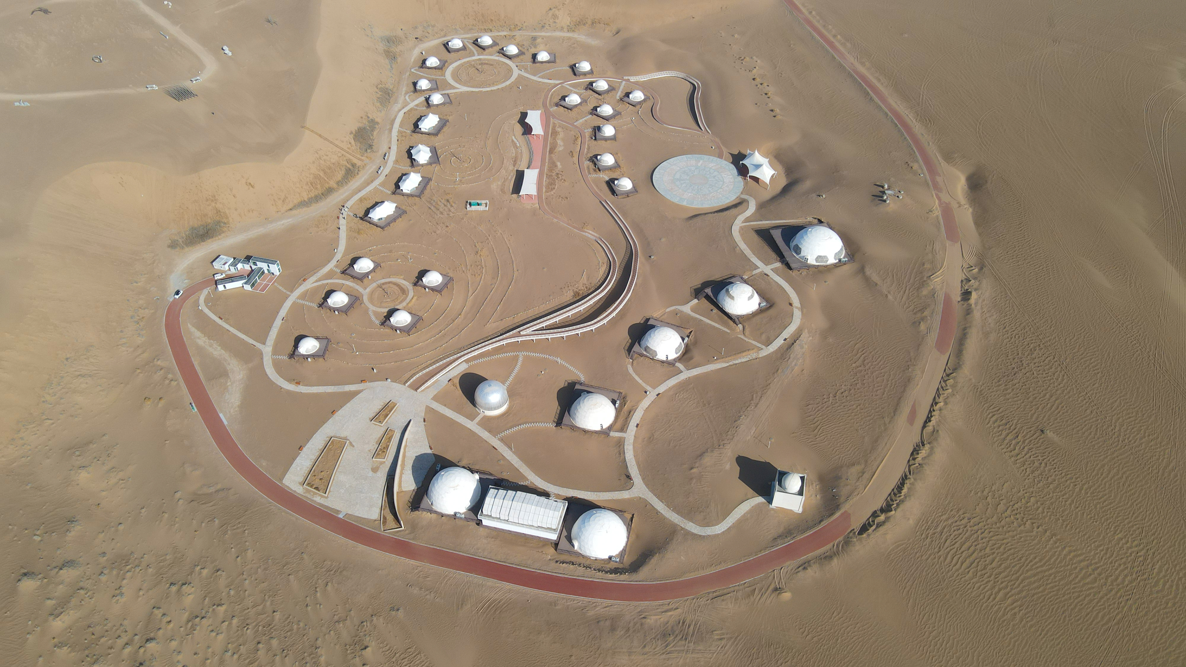 從(cong) 一望無際的光伏藍海,到星羅棋布白色星球建築,一條與(yu) 沙共處的生態保護和經濟效益雙贏之路正在大漠上徐徐展開。