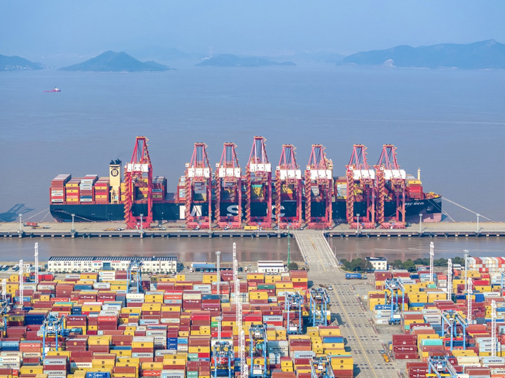 寧波舟山港在推動長三角一體(ti) 化發展中發揮重要作用。浙江海港供圖