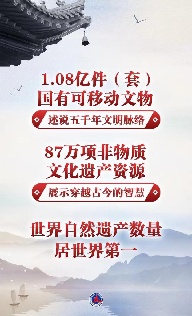 1.08億(yi) 件(套)國有可移動文物述說五千年文明脈絡,87萬(wan) 項非物質文化遺產(chan) 資源展示穿越古今的智慧,世界自然遺產(chan) 數量居世界第一……文化和自然遺產(chan) 濃縮著中華文明發展和自然演進的珍貴成果。
