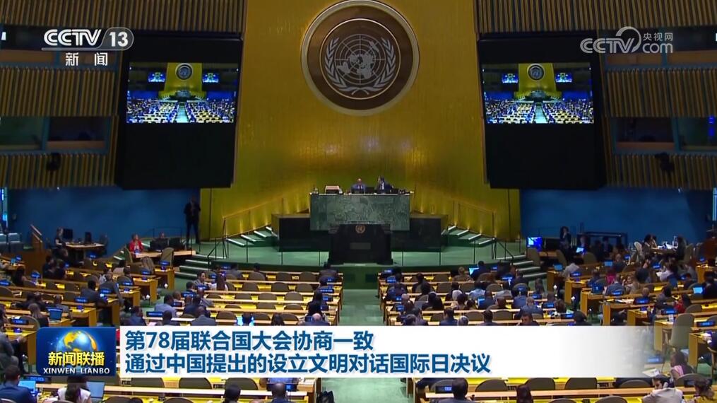 第78屆聯合國大會(hui) 7日協商一致通過中國提出的設立文明對話國際日決(jue) 議。