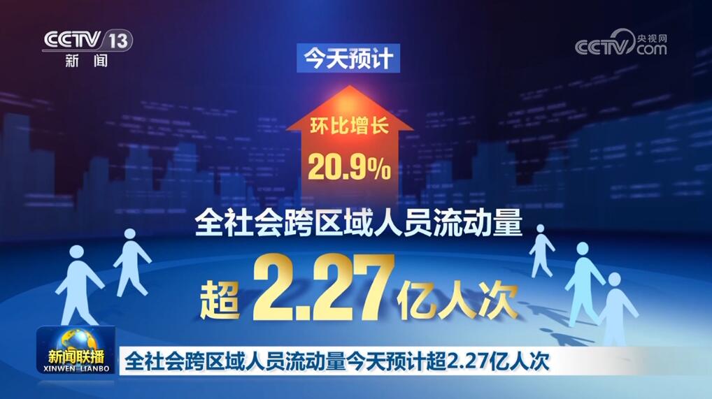 全社會(hui) 跨區域人員流動量8日預計超2.27億(yi) 人次