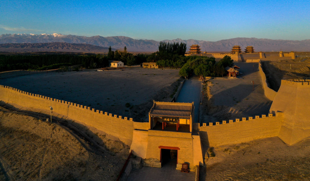位於(yu) 甘肅省嘉峪關(guan) 市的嘉峪關(guan) 關(guan) 城(2023年7月13日攝,無人機照片)。新華社記者 劉金海 攝