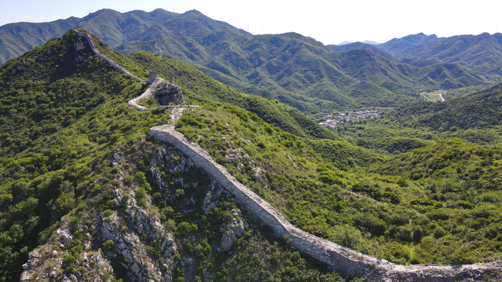 石峽關(guan) 長城和長城腳下的石峽村(2024年6月1日攝,無人機照片)。新華社記者 陳鍾昊 攝