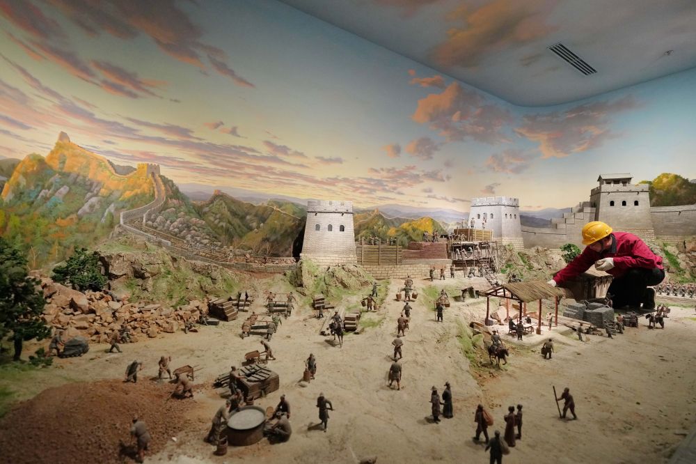 工人在山海關(guan) 中國長城博物館展廳布展(2024年4月11日攝)。新華社記者 楊世堯 攝