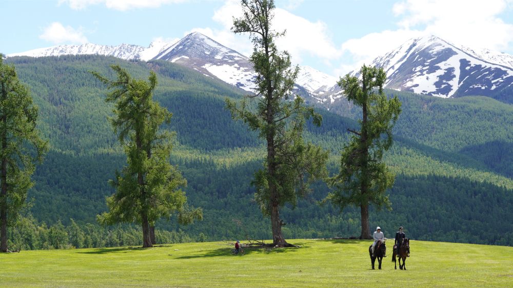 6月4日,遊客在新疆阿勒泰地區哈巴河縣的草原上騎馬遊玩。新華社記者 阿曼 攝