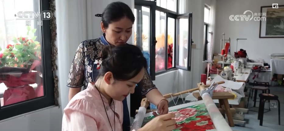 在慶陽市慶城縣驛馬鎮驛馬村,“90後”繡娘孟亭亭正在工坊裏和姐妹們(men) 趕製訂單。