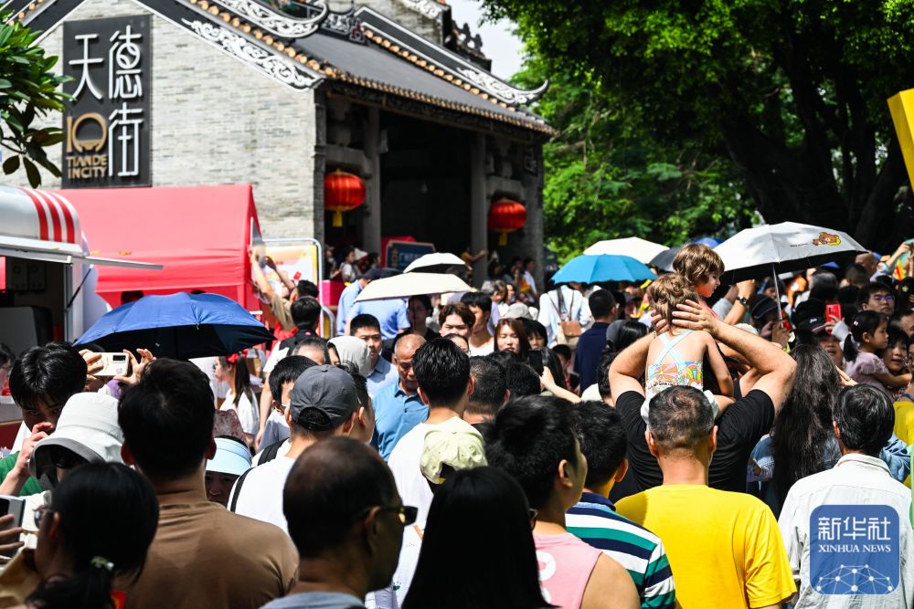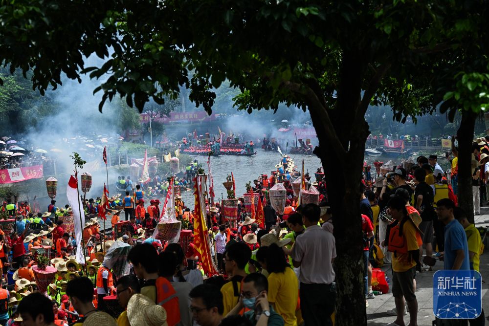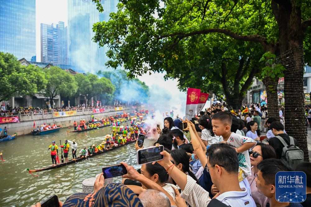 6月10日,國內(nei) 外遊客匯聚在獵德觀賞“龍船景”。“龍船景”是廣府地區水鄉(xiang) 在端午期間舉(ju) 辦的一種民俗活動。