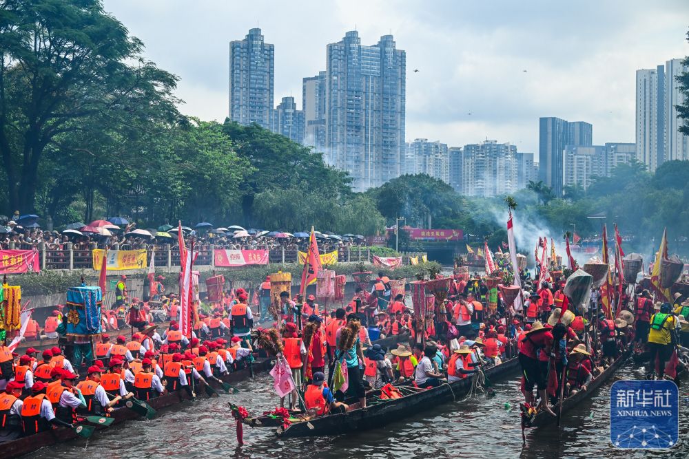 6月10日,四裏八鄉(xiang) 的龍舟匯聚在獵德湧參加“龍船景”。“龍船景”是廣府地區水鄉(xiang) 在端午期間舉(ju) 辦的一種民俗活動。