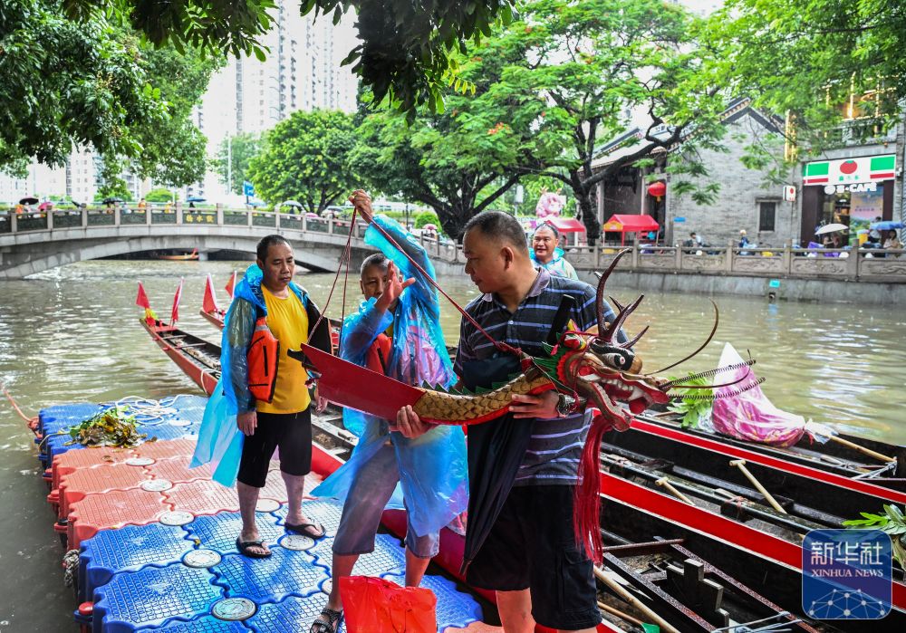 獵德村村民舉(ju) 行活動,為(wei) 端午期間的“龍船景”做準備(6月1日攝)。