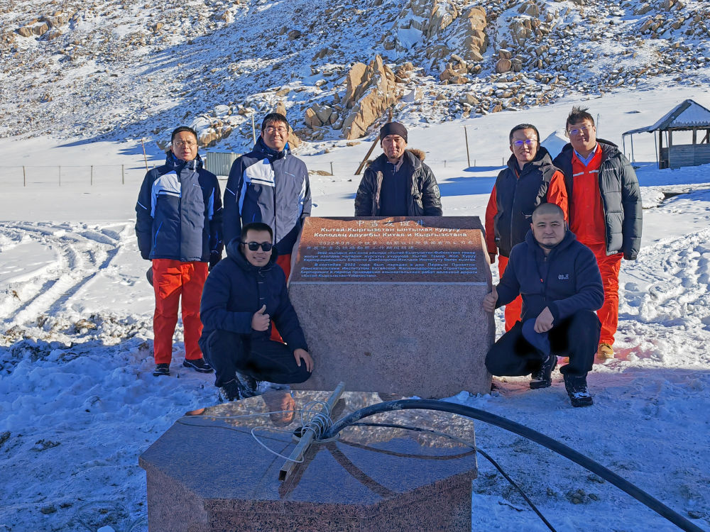 執行中吉烏(wu) 鐵路可行性研究的中鐵第一勘察設計院專(zhuan) 家團隊成員在吉爾吉斯斯坦納倫(lun) 州的“中吉友誼井”(前)和紀念石碑旁合影(2022年11月26日攝)。新華社發(中鐵第一勘察設計院供圖)