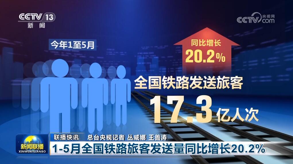 1—5月全國鐵路旅客發送量同比增長20.2%