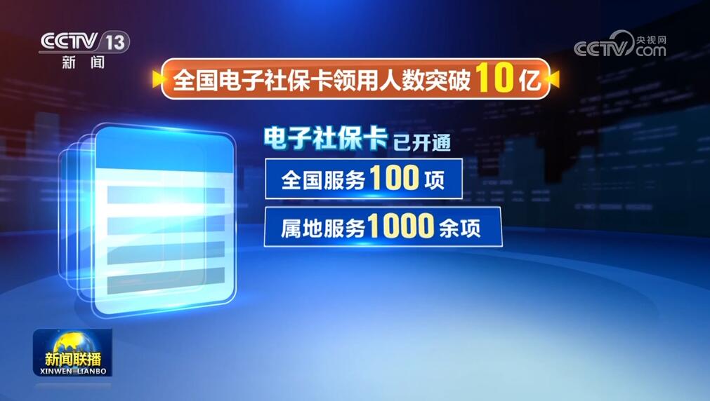 全國電子社保卡領用人數突破10億(yi) 。電子社保卡已開通全國服務100項,屬地服務1000餘(yu) 項。