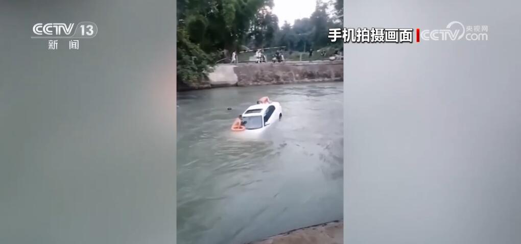 近日,在四川成都的一處河道,一輛轎車意外墜入湍急的河水中,車內(nei) 有一名男子。危急時刻,附近工作人員和群眾(zhong) 合力展開救援。