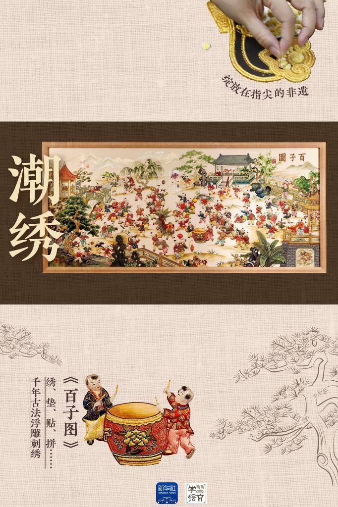 潮繡,屬我國四大名繡中的粵繡門派,最大的特點是立體(ti) 墊高,以繡藝精美細致、構圖均衡飽滿著稱,色彩亮麗(li) 又具立體(ti) 感。