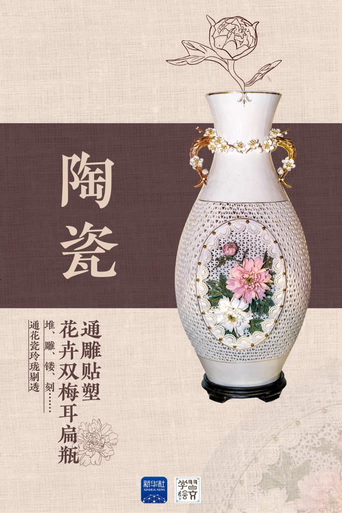 通花瓷器鏤空可達5層之多,或施於(yu) 釉上彩繪,或與(yu) 浮雕、立雕相結合,或配以色土、腐蝕金等裝飾,玲瓏剔透,娟麗(li) 秀美。有的瓷瓣片下水不沉,落地不碎。