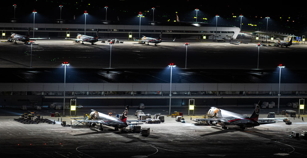 6月2日淩晨拍攝的鄂州花湖國際機場停機坪一角。新華社記者 肖藝九 攝