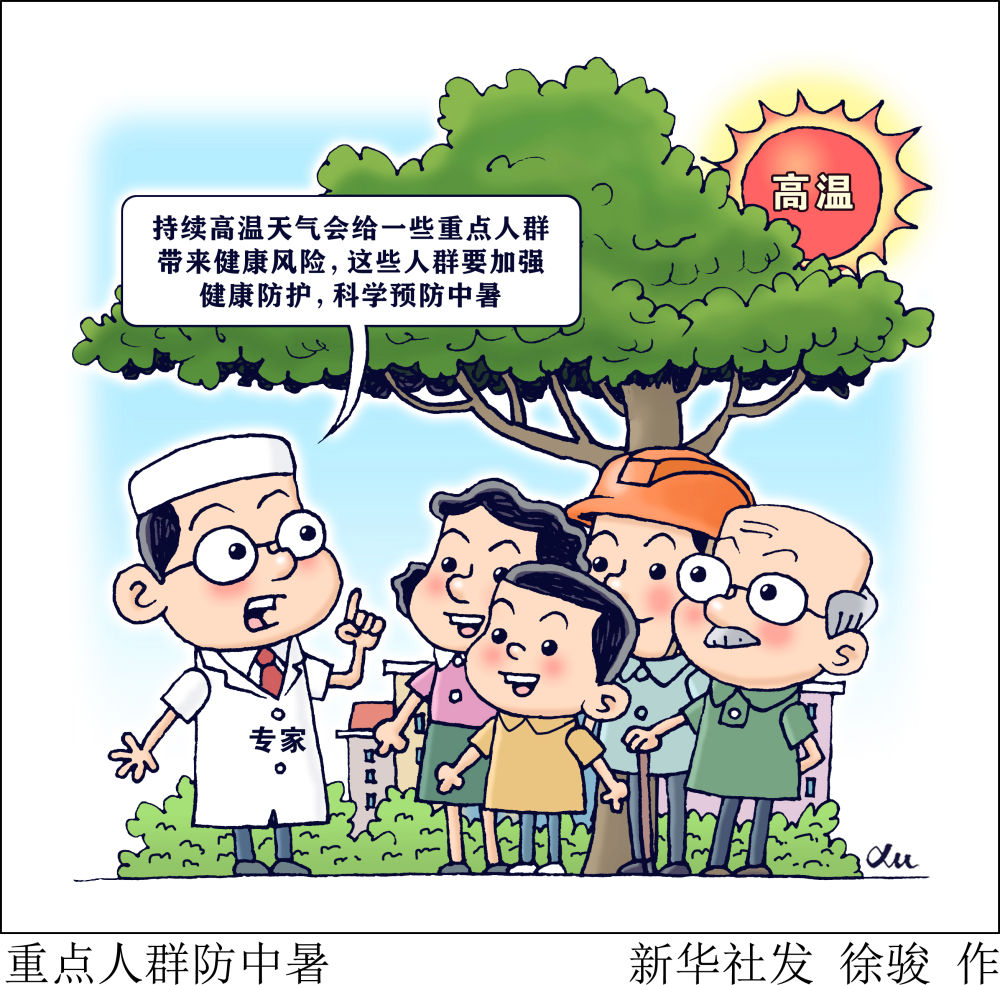 近日,中央氣象台連續發布高溫預警,多地氣溫突破40攝氏度“大關(guan) ”。專(zhuan) 家提示,高溫天氣會(hui) 給一些重點人群帶來健康風險,這些人群要加強自我防暑降溫意識,及時補充水分,保證充足睡眠和健康飲食。
