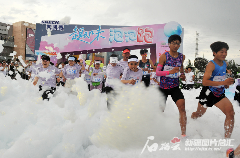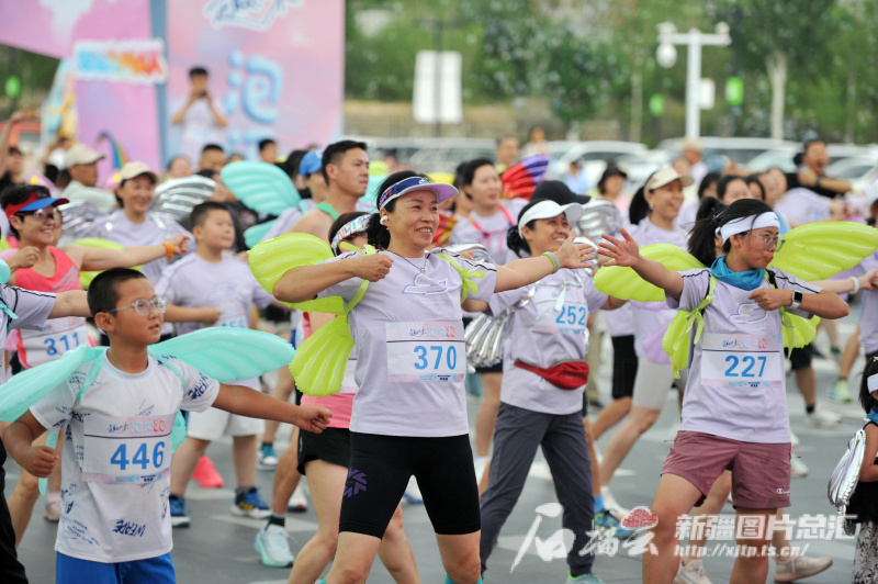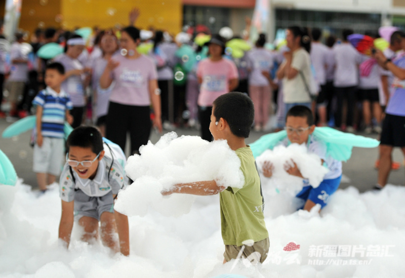 △6月14日,一場趣味“泡泡跑”活動在烏(wu) 魯木齊杉杉奧特萊斯廣場舉(ju) 辦,600多名市民參加了這場別開生麵的5公裏“泡泡跑”。與(yu) 傳(chuan) 統的跑步比賽不同,“泡泡跑”更具趣味性,參與(yu) 者可以邊跑邊玩,盡情享受一場清涼的泡泡盛宴。石榴雲(yun) /新疆日報記者 秦梅花攝